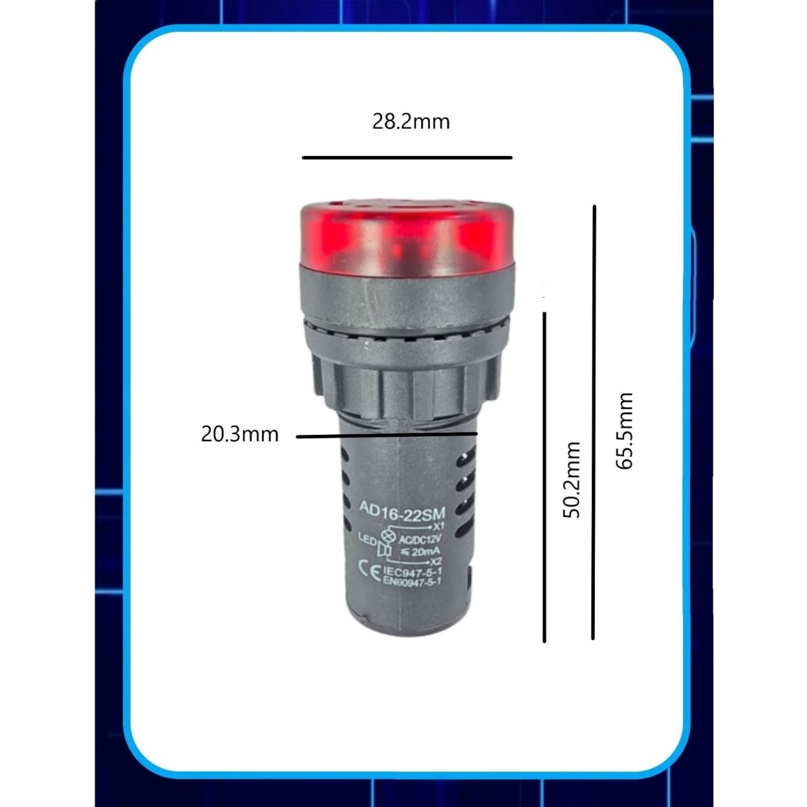 o Sinaleiro Buzzer Sonoro Led Vermelho 12v 20ma AD1622SMR12V. Este sinalizador