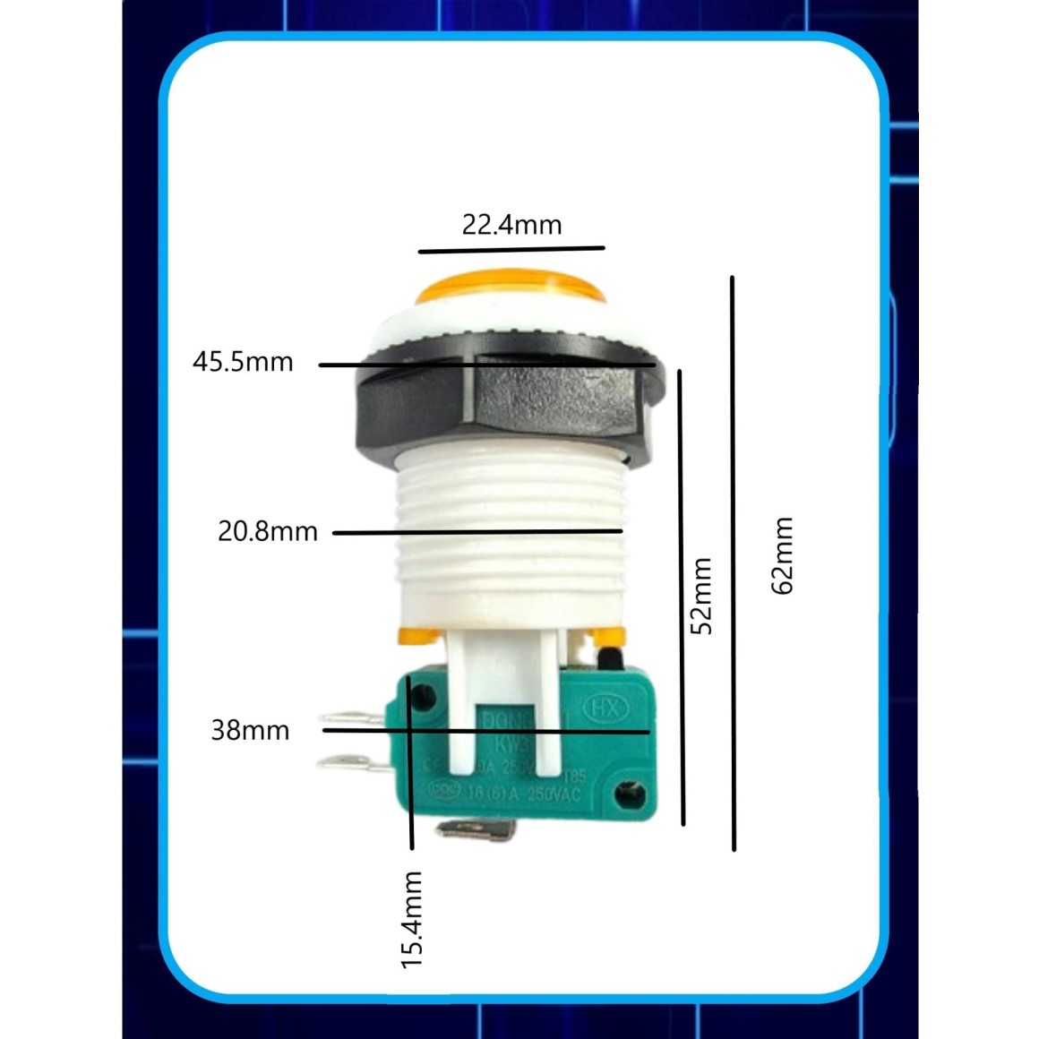 - Botão: 22.4mm;