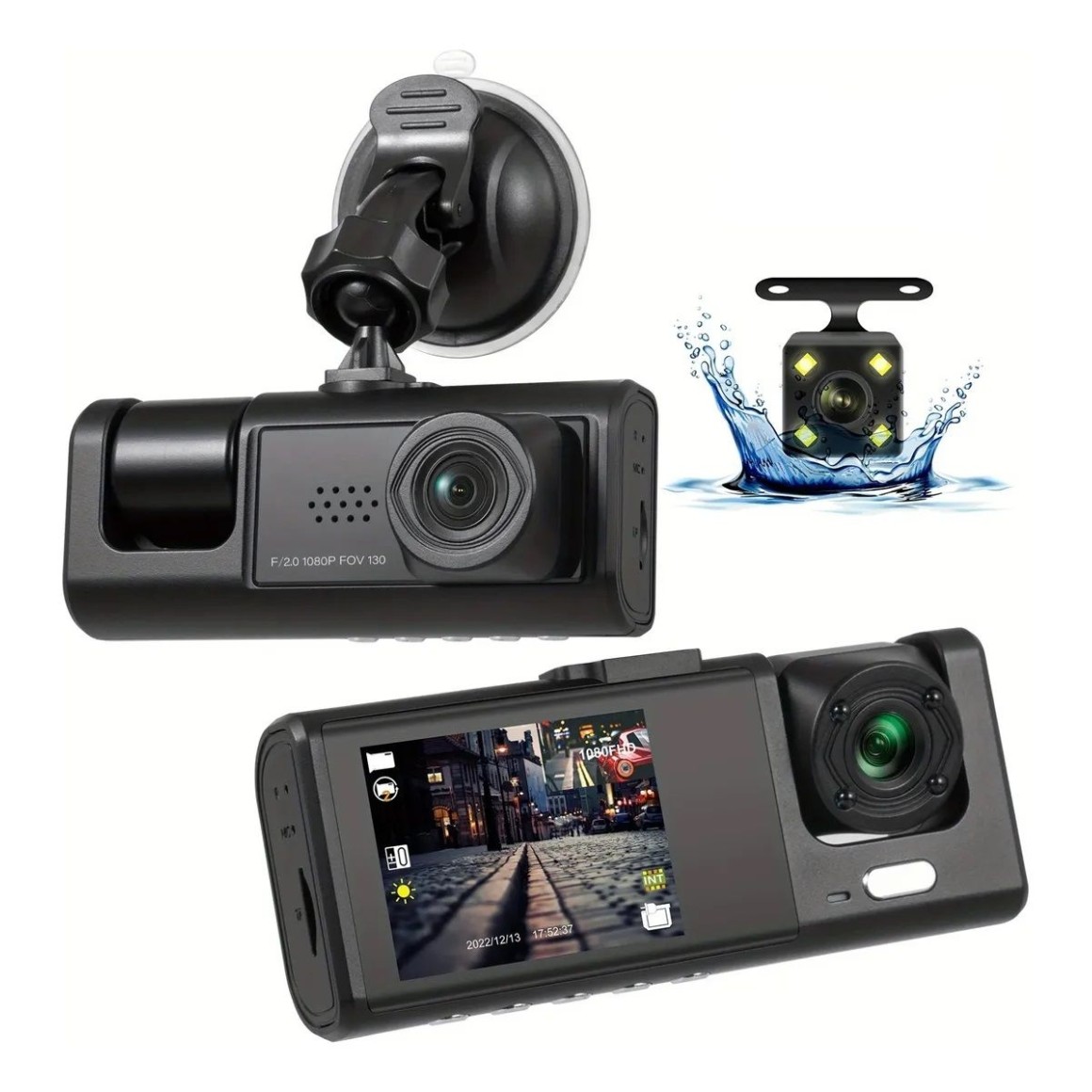 1. Câmera tripla: gravador de direção transparente, três câmeras frontal,