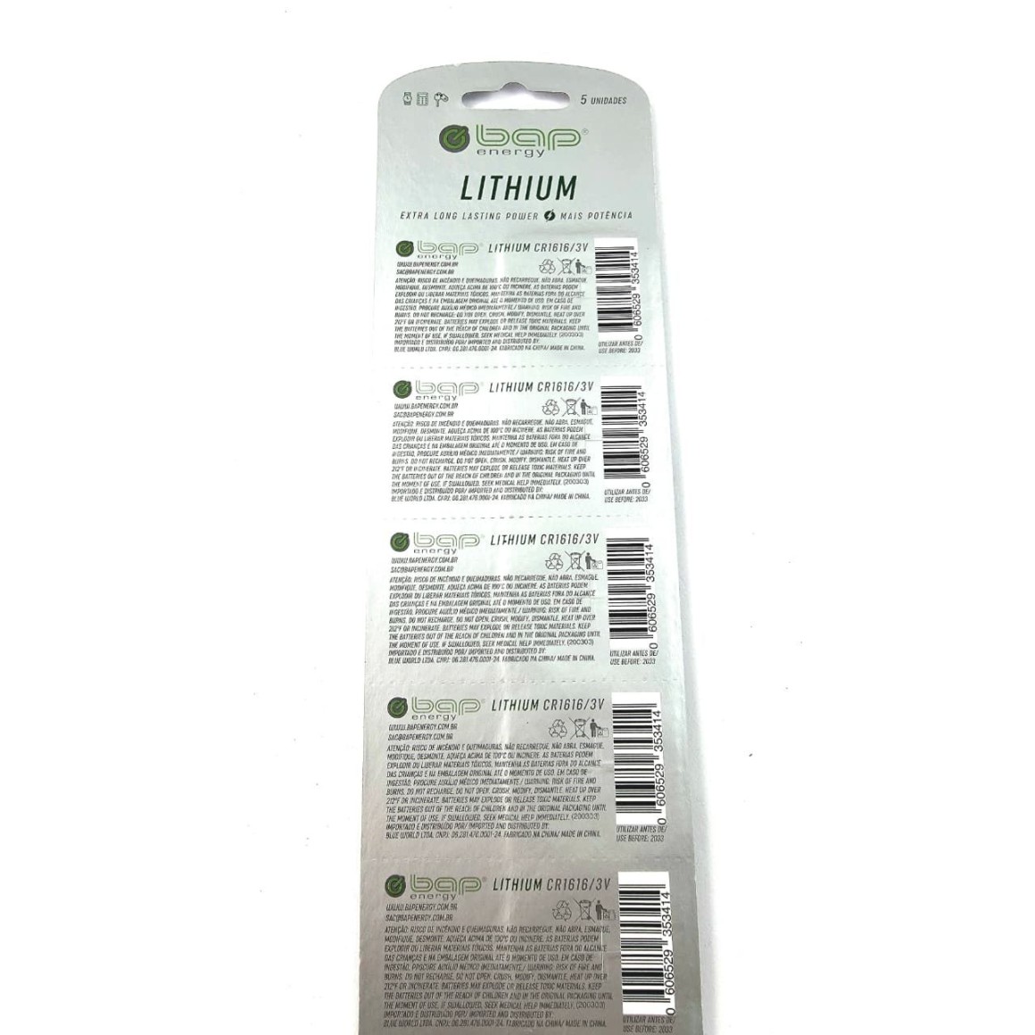 Bateria Litium Cr 1616 3v Controle Alarme Cartela C/5 Un