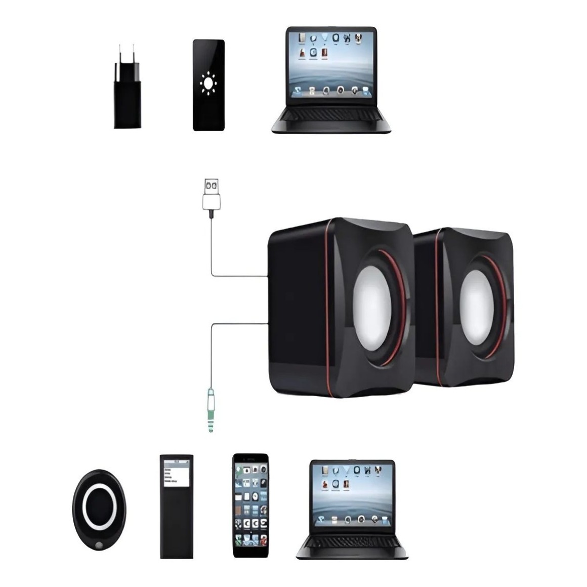 Mini Caixa de Som USB 2.1 para PC, Notebook e Monitor – Som Potente e Compacto