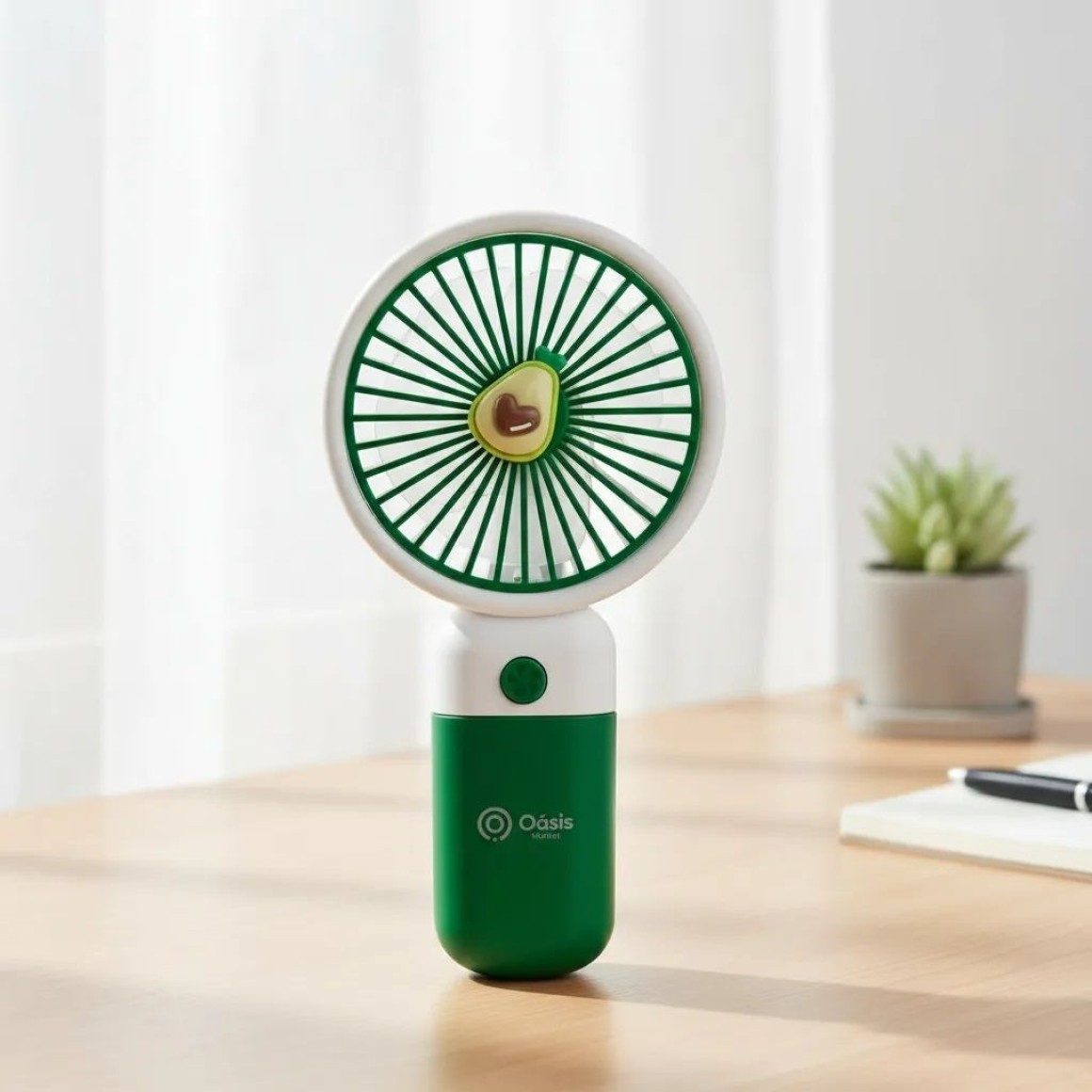 Mini Ventilador Portátil Recarregável 300 mAh Silencioso Verde