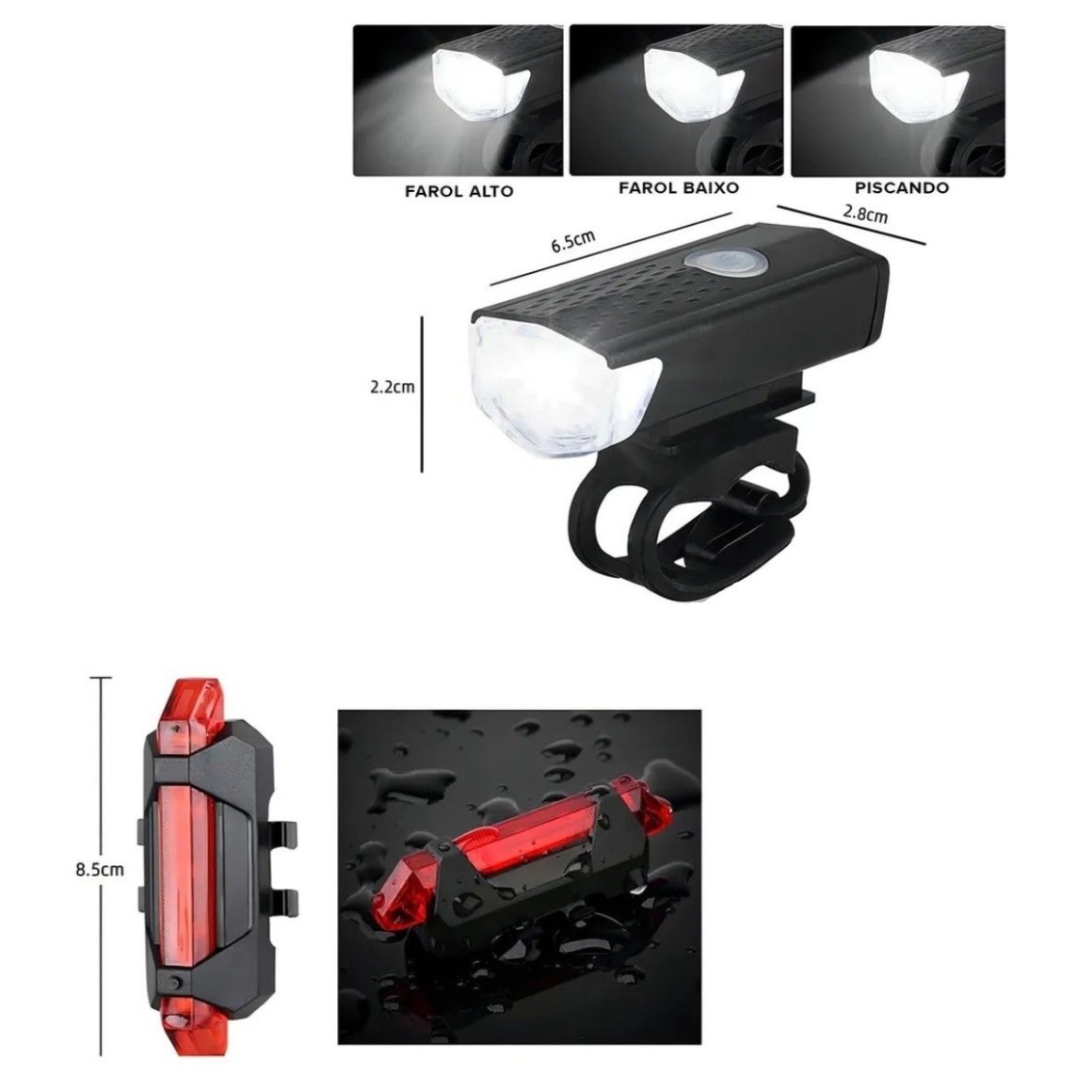 Este Kit Farol e Lanterna Bike Led Recarregável Resistente A Água é um produto
