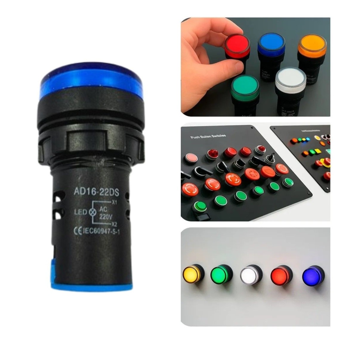 o Sinaleiro Led Azul 220-240VAC AD1622DSB. Este sinalizador é uma peça