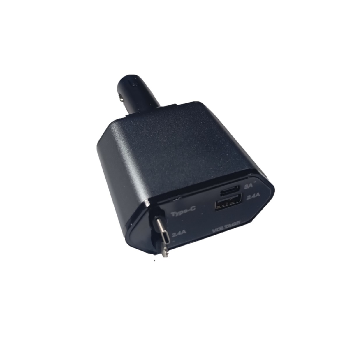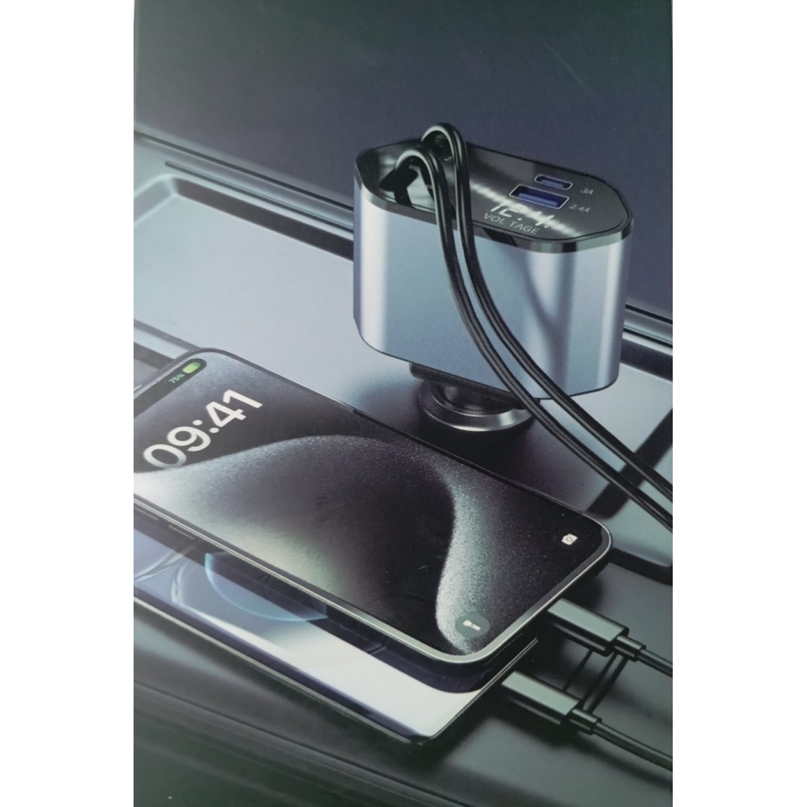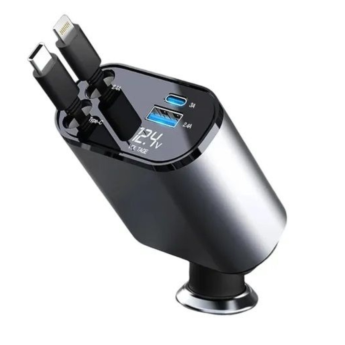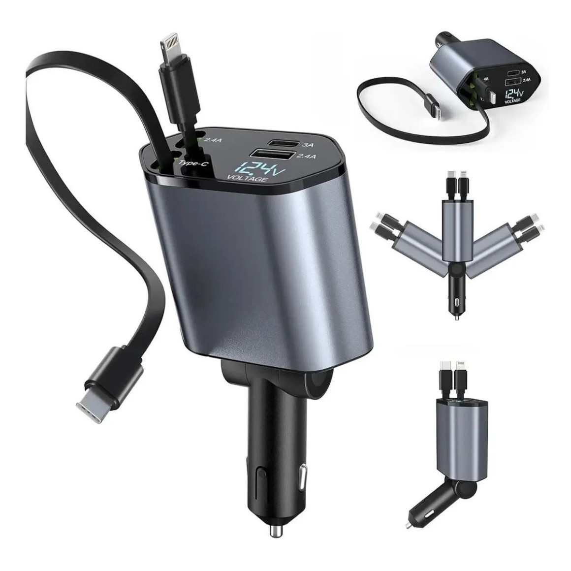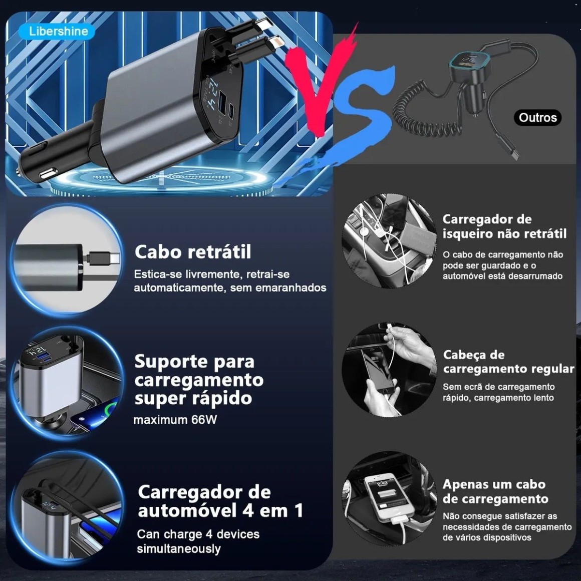 Carregador Turbo Veicular 4 em 1 Tipo C Retratil