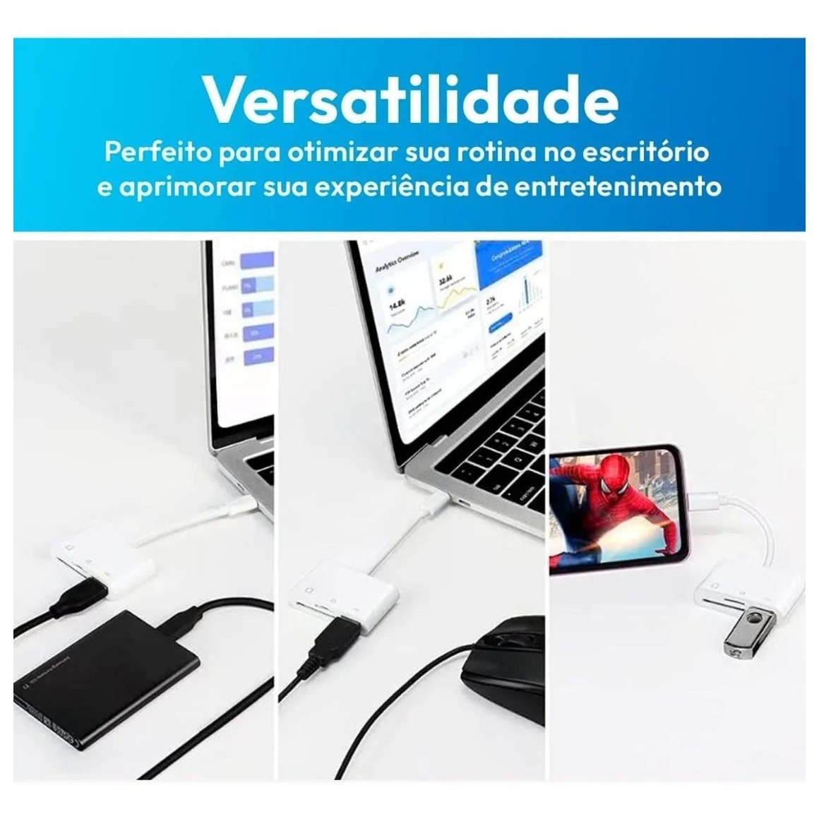 Seja para transferir fotos, vídeos ou documentos, o Adaptador USB Tipo C 3 em 1