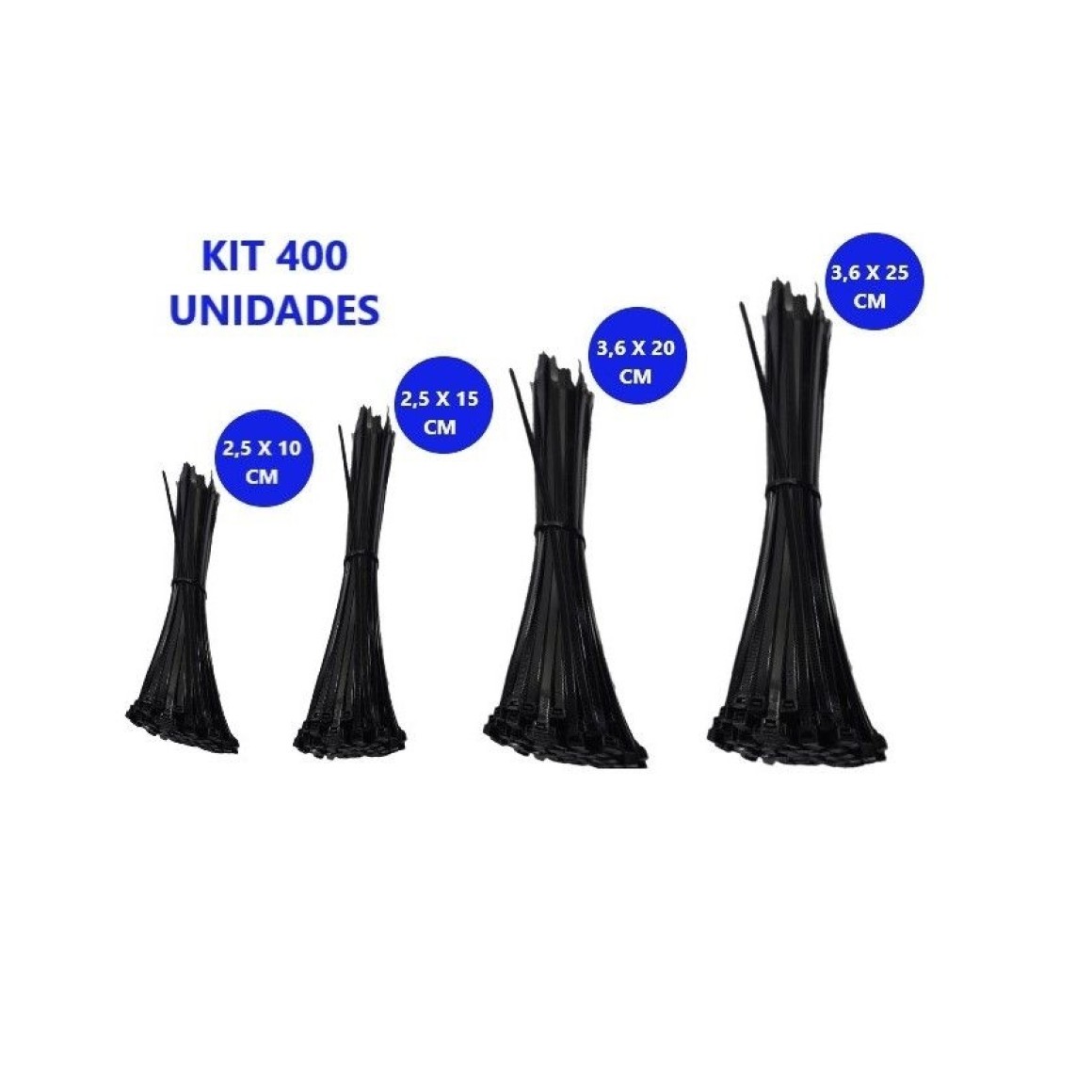 Kit contendo 400 peças, sendo 4 Tamanhos de Abraçadeiras de Nylon, esse kit é