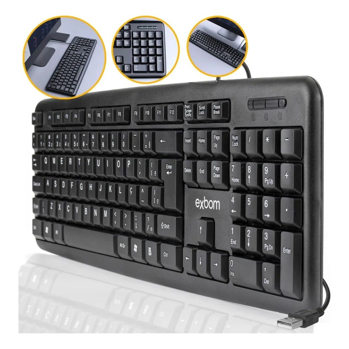 Teclado Usb Para Pc Notebook Silencioso Macio Abnt2 Com Fio Preto