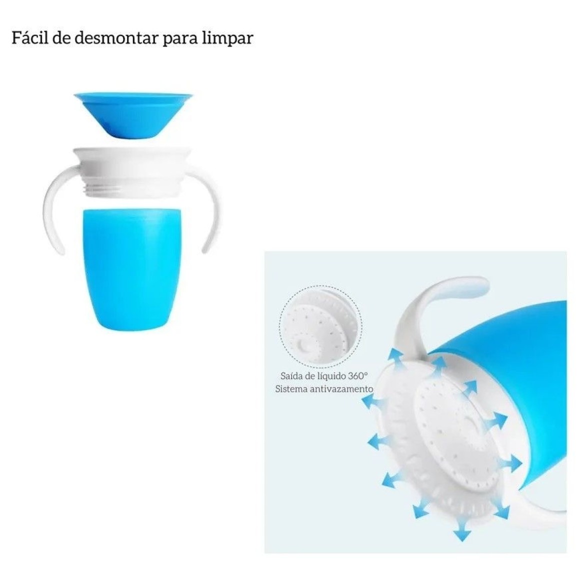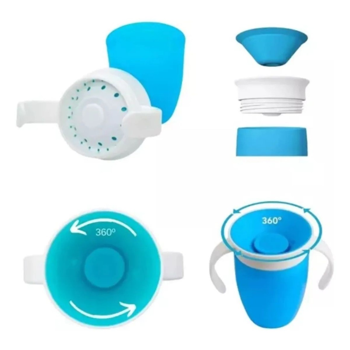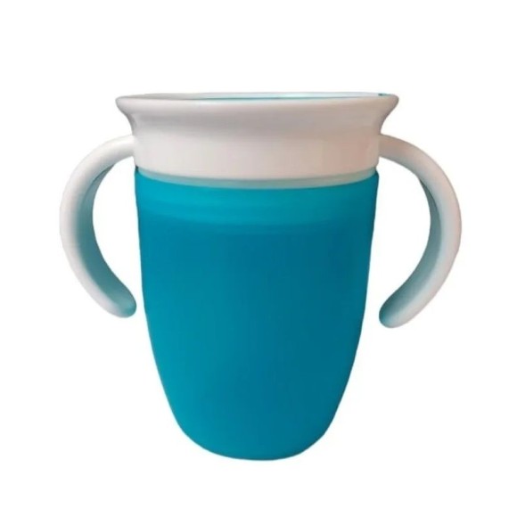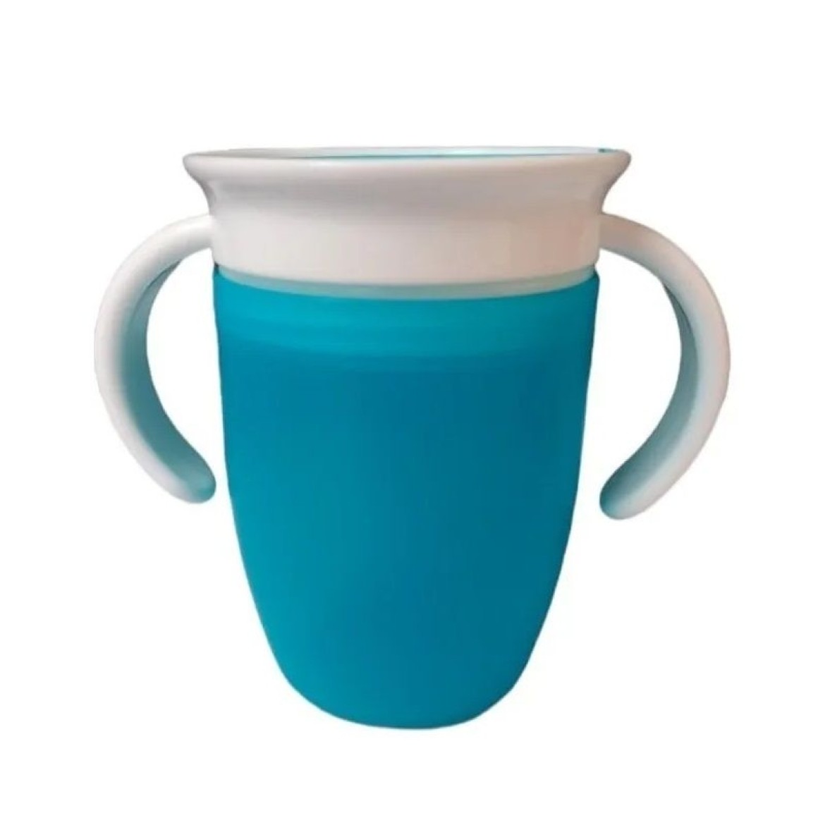 Copo Infantil 360 Transicao Antivazamento S/ Bico Com Alça Azul