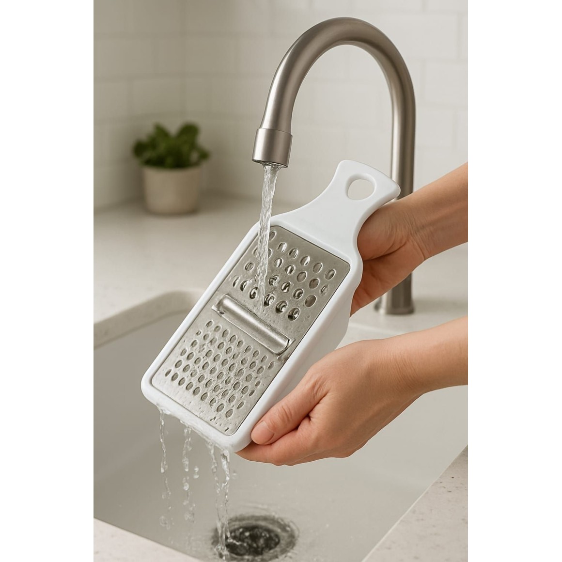 A inovação não para por aí – o ralador possui um prático reservatório, que não apenas facilita o processo de ralar, mas também coleta os alimentos de forma organizada, evitando bagunças na sua cozinha. O cabo proporciona conforto durante o uso e armazenamento eficiente.