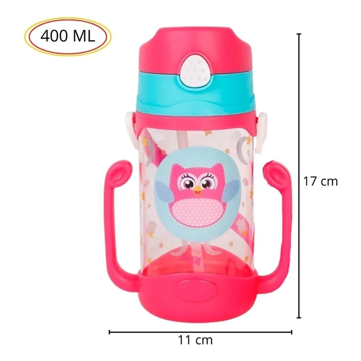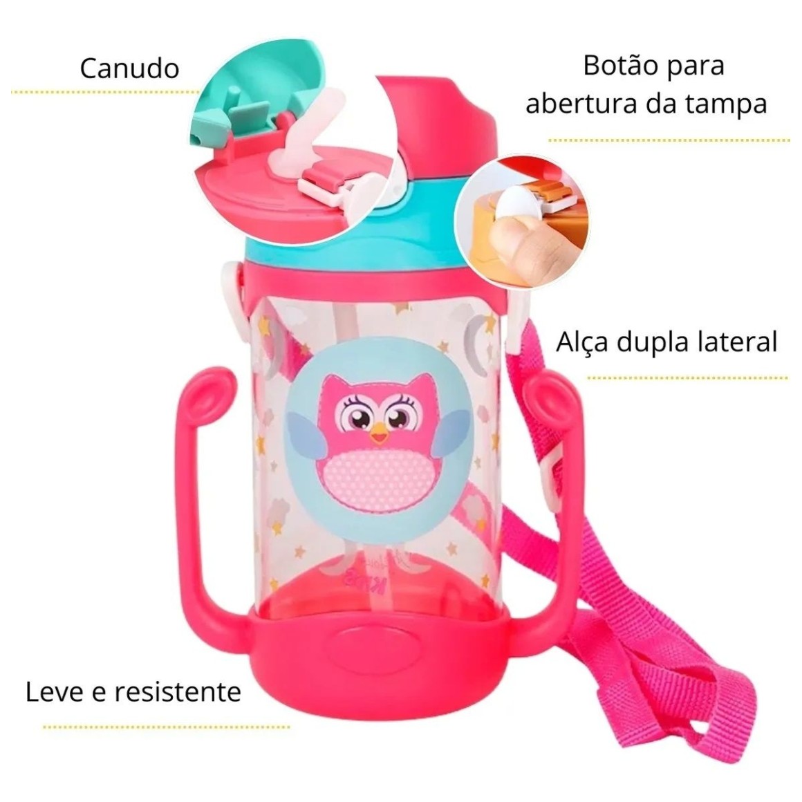 Garrafa De Água Infantil 400ml Alça Dupla C/ Canudo Silicone Cor Rosa