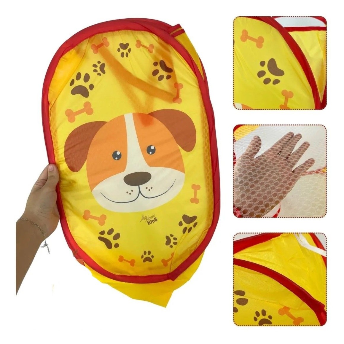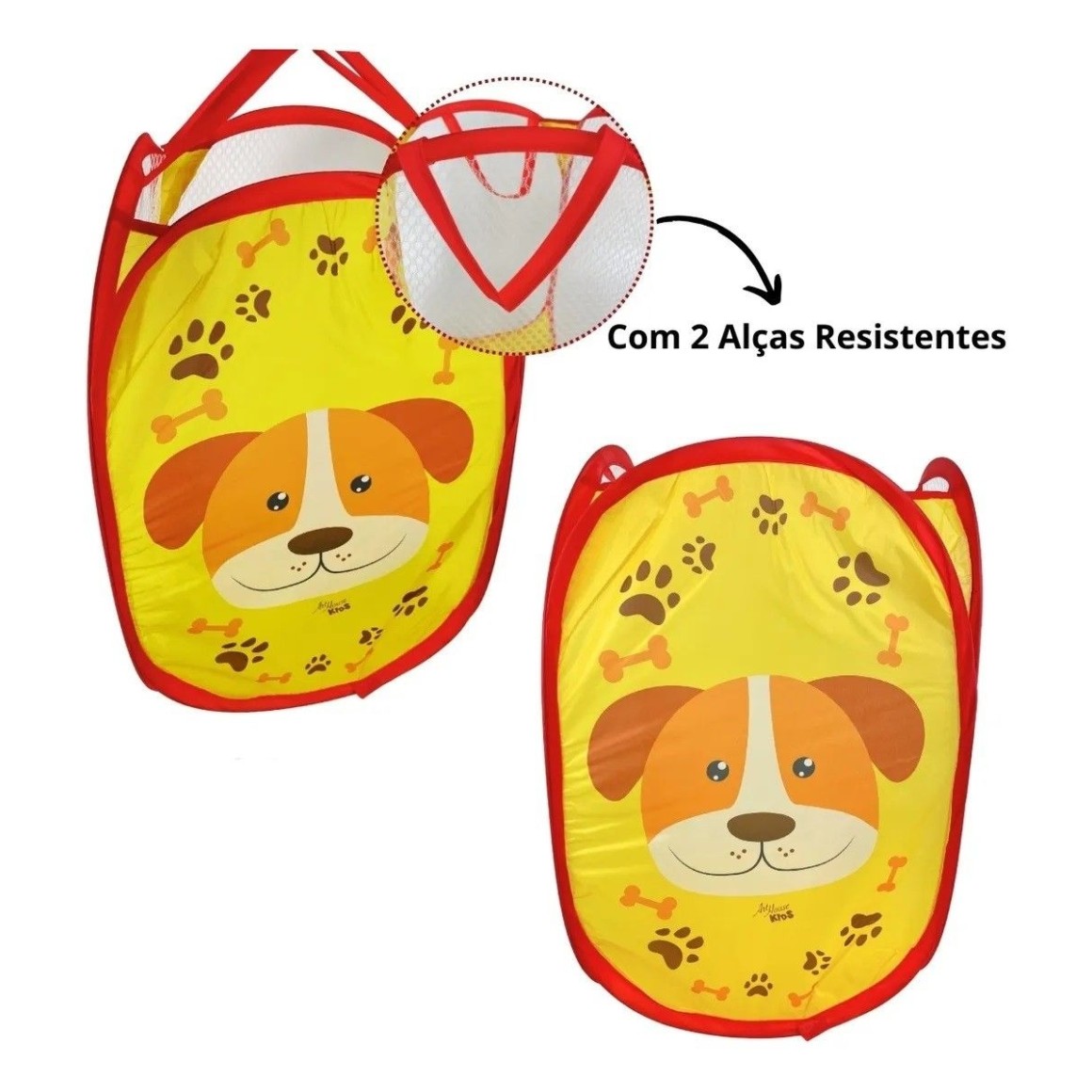 Cesto De Roupa Organizador Multiuso Tecido Dobrável Cachorro Telado