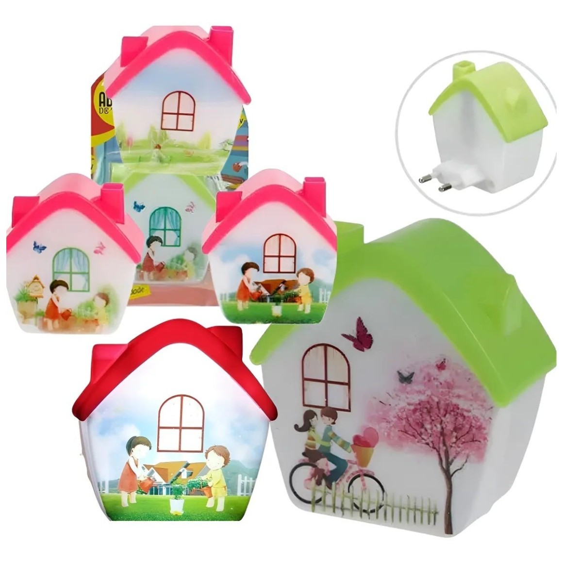 Abajur Luminária De Tomada Infantil Led Bivolt Casinha Verde