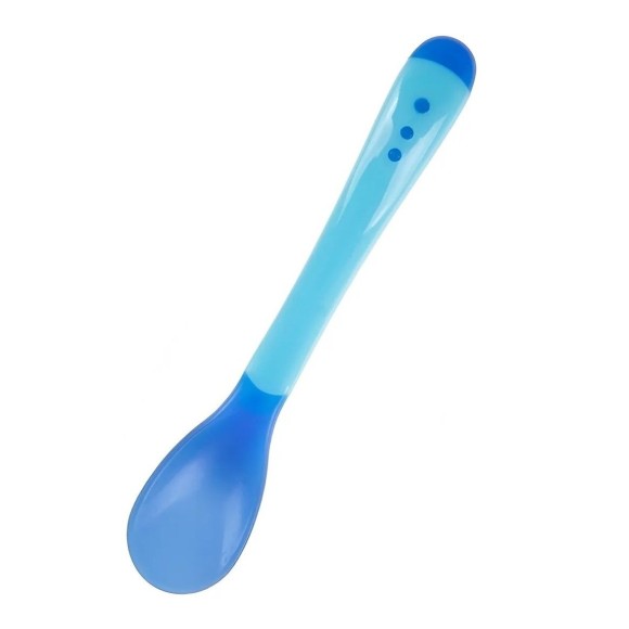 Colher Infantil Termo Sensível Proteção Silicone Bebe Azul