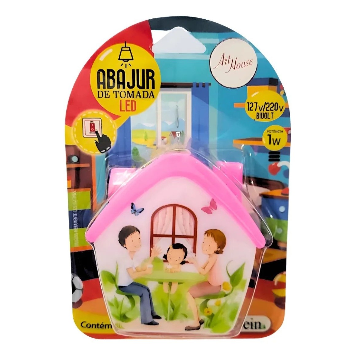 Abajur Luminária De Tomada Infantil Led Bivolt Casinha Rosa