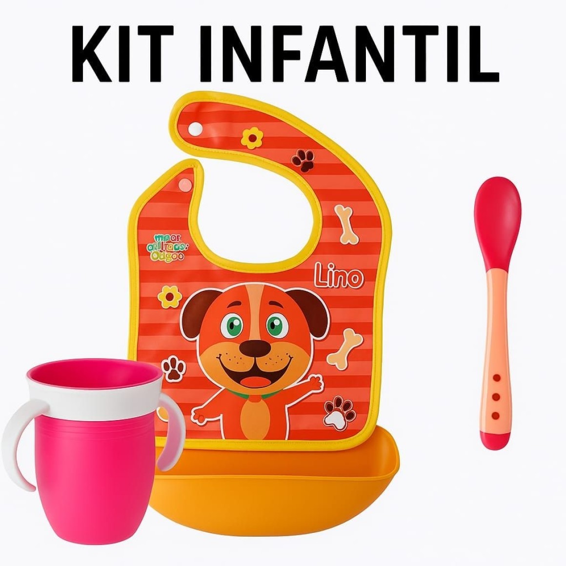 Kit Infantil Babador Pega Migalhas Colher Silicone Copo Rosa