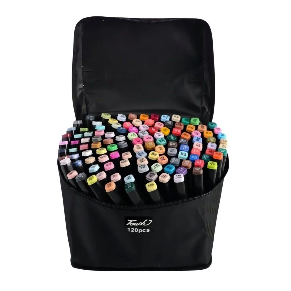 Conjunto Canetas Marcador Colorida Ponta Dupla Kit 120 Cores Estojo Escolar Canetinha