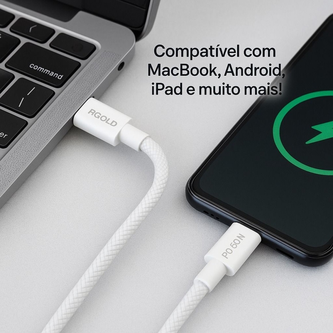 ?? Conectores Tipo-C em ambas as pontas, compatíveis com carregadores turbo, adaptadores e power banks modernos.