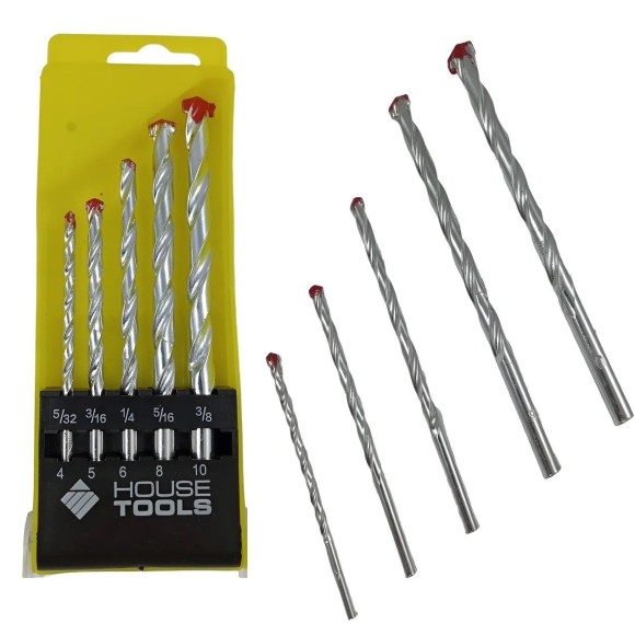 Jogo 5 Brocas Concreto Tamanho 4/5/6/8/10 Mm Com Estojo