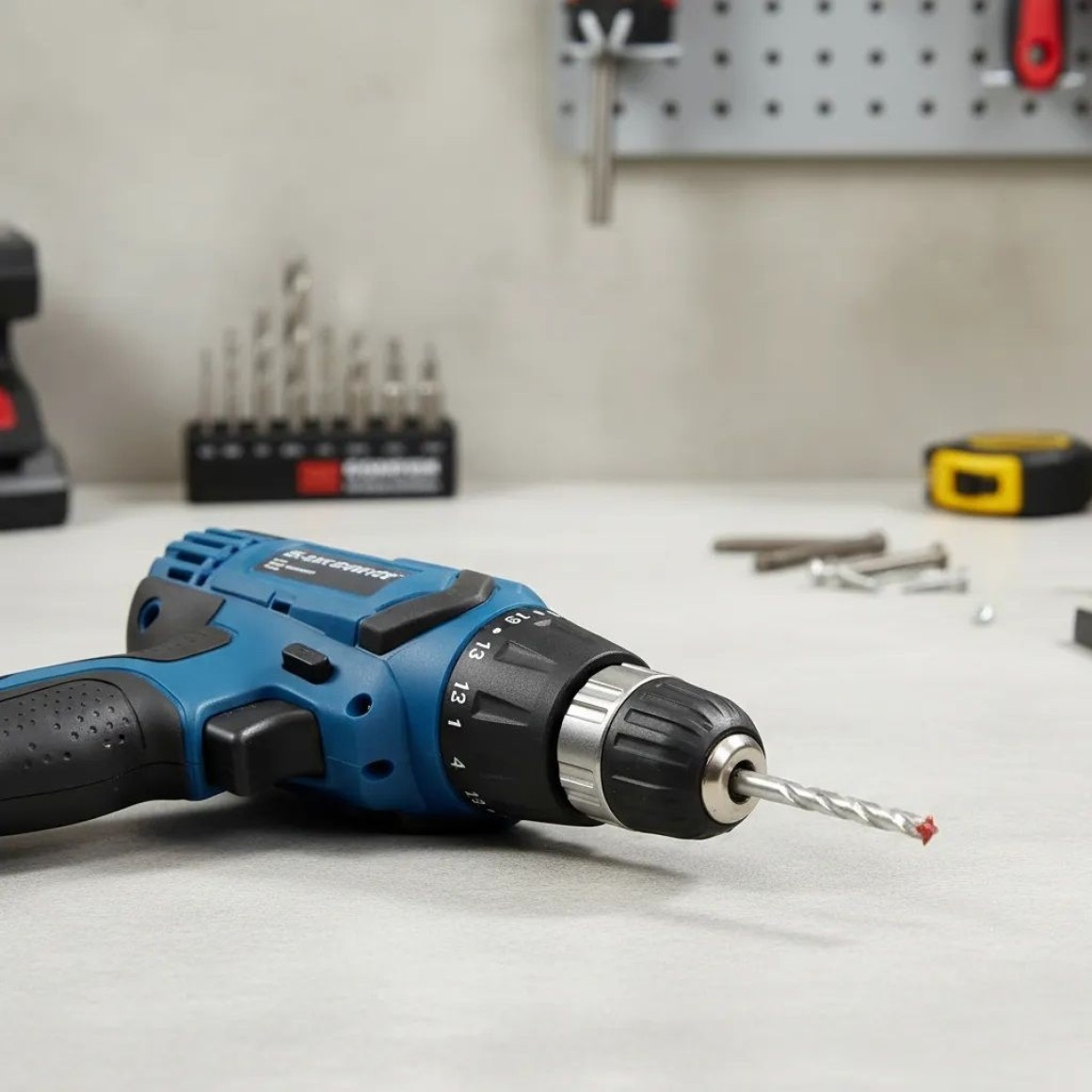 concreto. O conjunto inclui cinco brocas de tamanhos variados, de 4 a 10 mm,