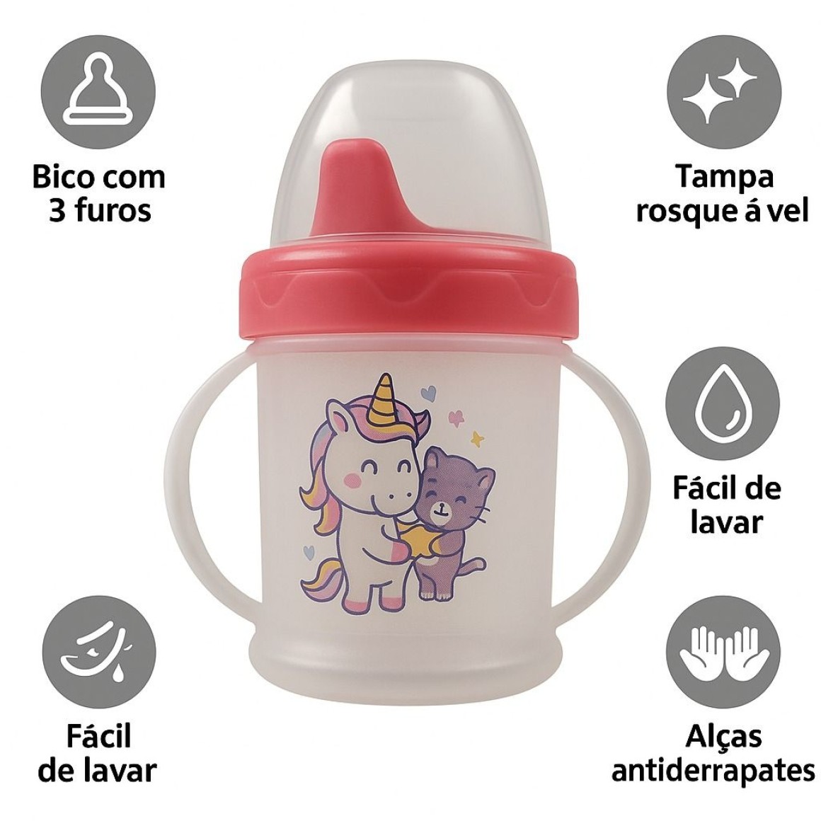 Desenvolvido para o período de transição da mamadeira para o copo, super fácil de usar no dia a dia, além de divertido!