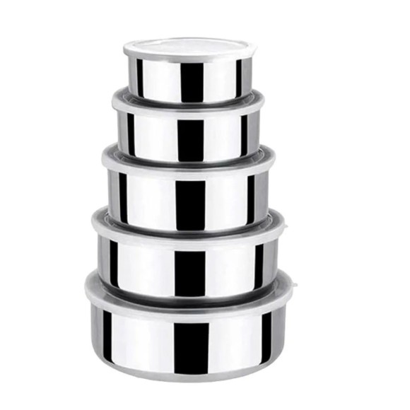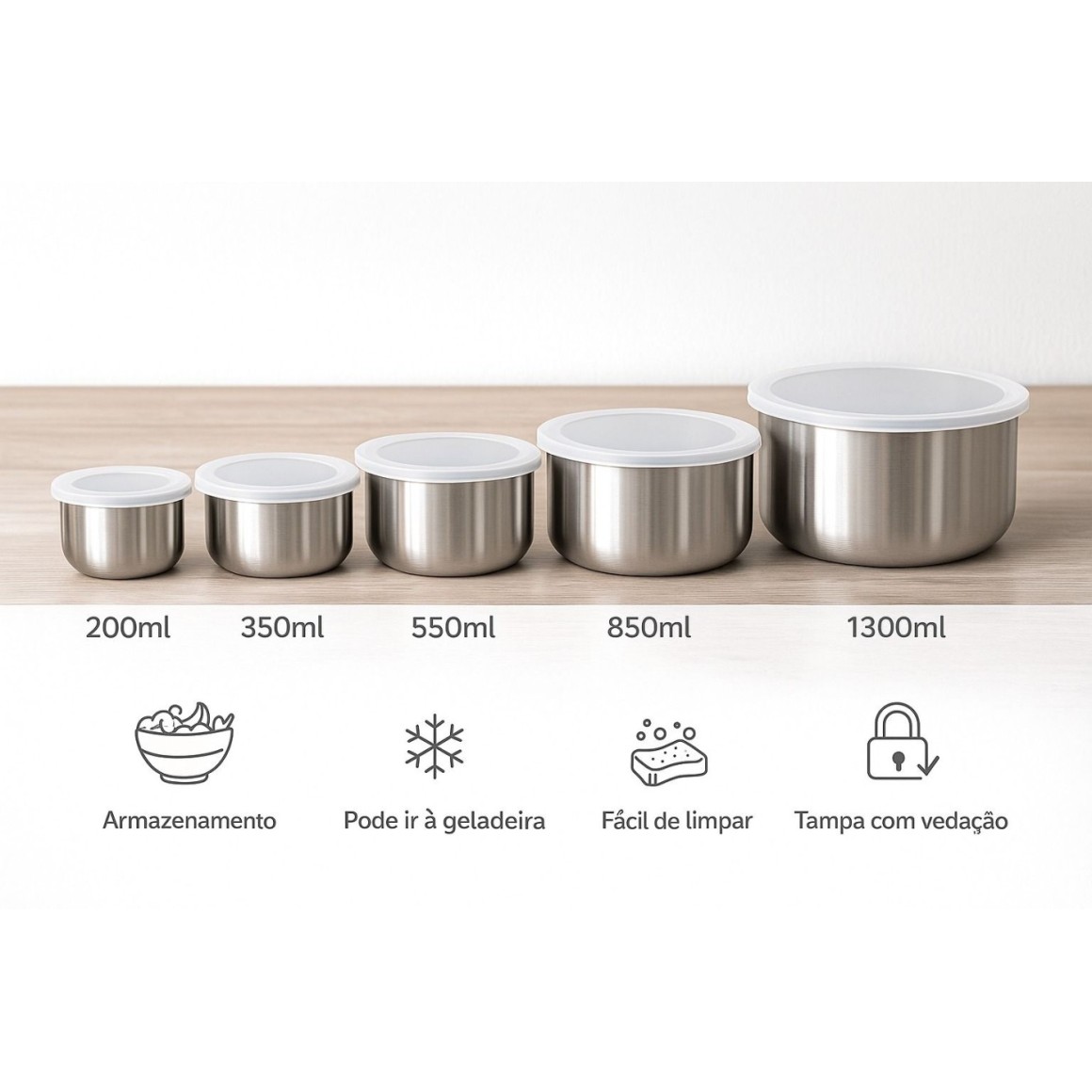Conjunto de Potes Inox com Tampa 5 Peças 200ml a 1300ml